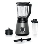 در مورد تنظیمات، این مخلوطکن دارای دو سرعت قابل تنظیم میباشد که هر کدام با 3000 دور در دقیقه عمل میکنند. این امکان به کاربر میدهد تا به صورت دقیق سرعت مورد نظر خود را انتخاب کرده و مواد مختلف را با کارایی بالا پردازش نماید. همچنین، برخی از لوازم همراه این مخلوطکن از جمله بطری 600 میلی لیتری ToGo و درپوش درجهبندی شده با قابلیت استفاده به عنوان پیمانه اندازهگیری (حداکثر تا 50 میلی لیتر) نشان از توجه بوش به نیازهای کاربران در جزئیات کوچک نیز میباشد.