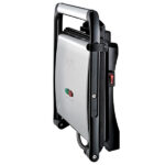 - قابلیت نگهداری به صورت عمودی: این گریل دارای قابلیت نگهداری به صورت عمودی است که به کاربر این امکان را میدهد تا در فضاهای محدود، به بهینهترین شکل از فضا استفاده کند. این ویژگی به ترتیب از جا افتادن دستگاه جلوگیری میکند و موجب توفیر فضا در آشپزخانه میشود.